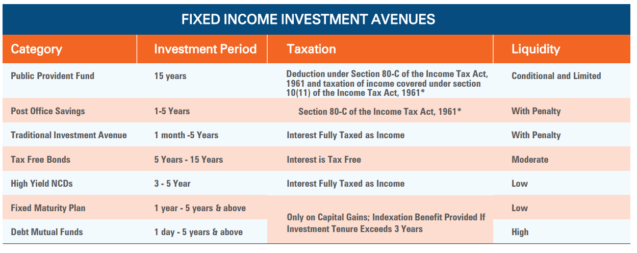 Below are some of the Products / Schemes available for getting Fixed Income / Conservative Risk Profile Investors.