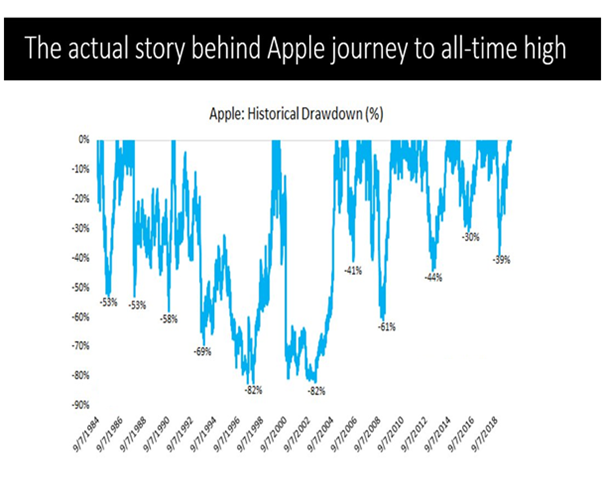 It’s our psychology, when we miss to buy we crib and think about opportunity loss but imagine if you had entered the stock on March 23rd or bought for 100$ in 2016 or few years before that, would you be still holding that stock. No, not everyone, only few would have that guts to ride volatility. Check the price chart of Apple.