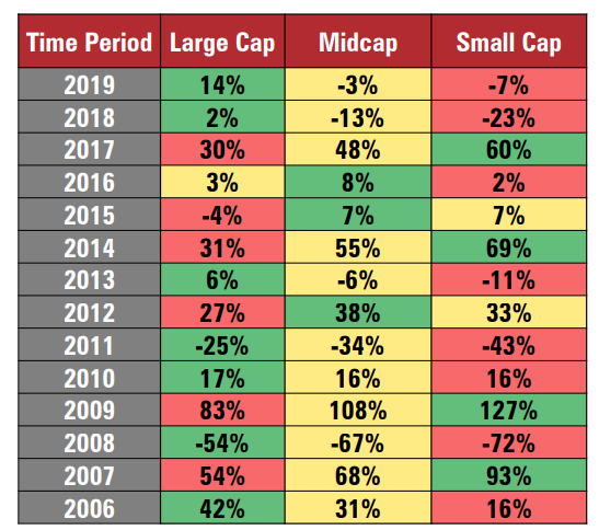 Below is the performance history of the Large, Mid and Small cap indices in the past.
