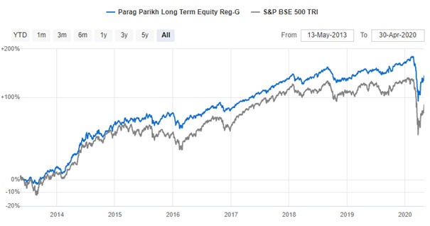 - Proven Investment Strategy – Parag Parikh Long Term Equity Fund adheres to the value style of investing and selects stocks across market cap (large, mid and small-sized companies). It follows the buy-and-hold strategy and manages a concentrated portfolio of a few high-conviction stocks.